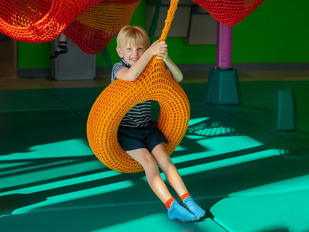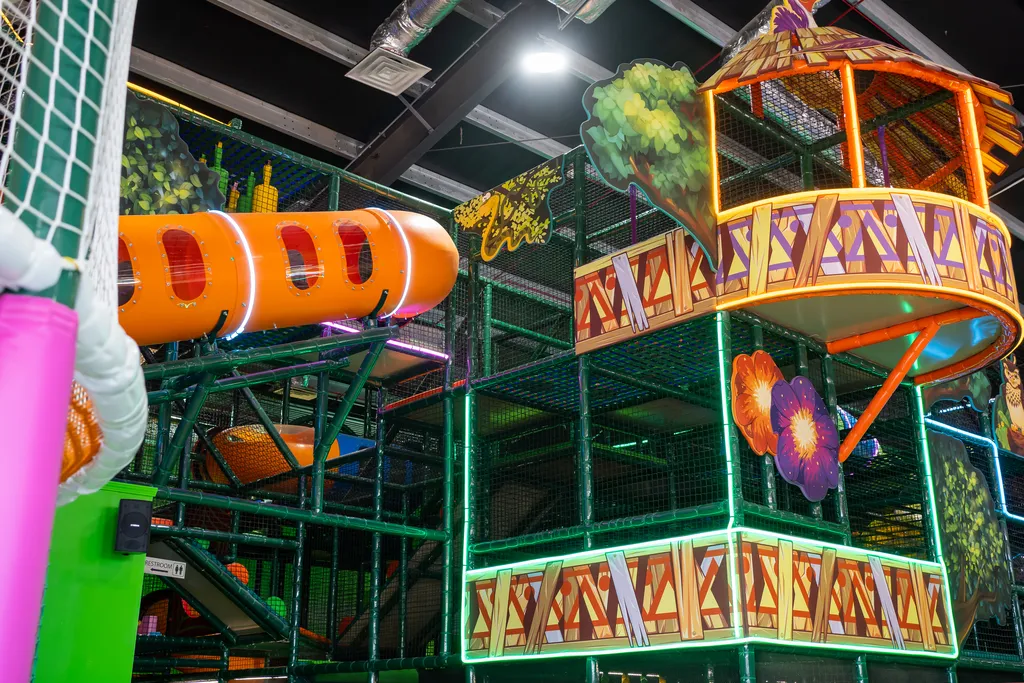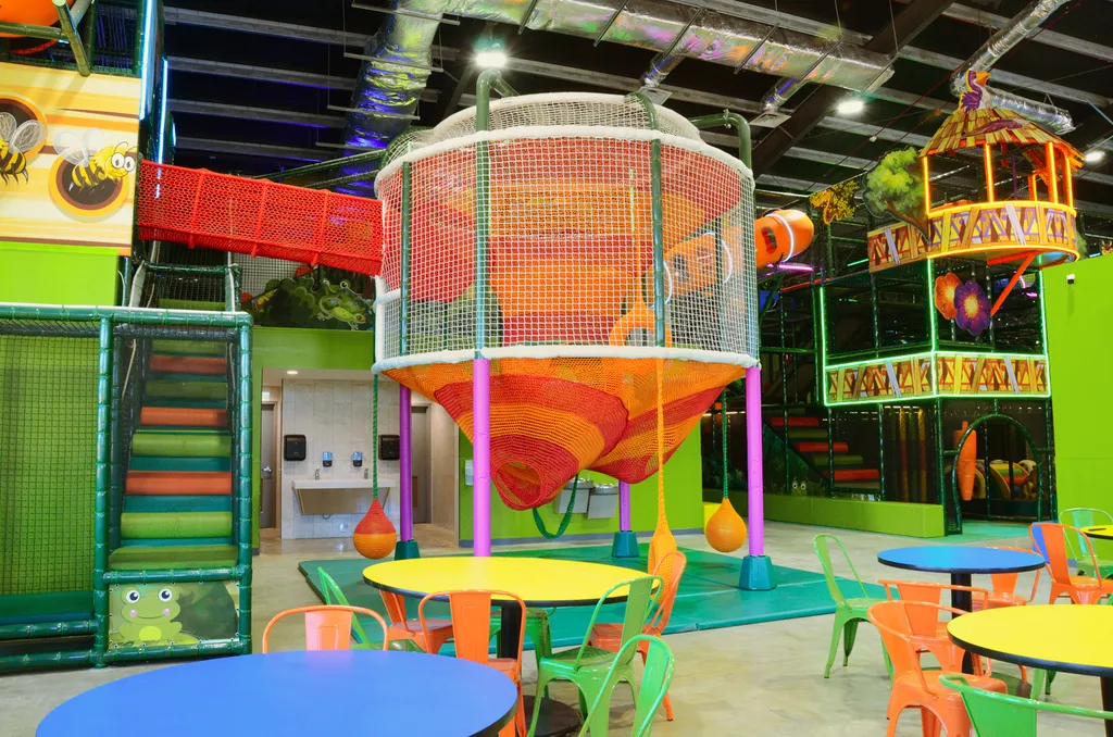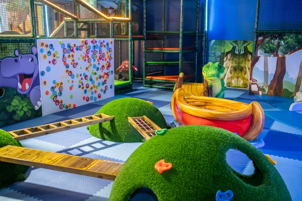 Kidsville’s Indoor Playground is specifically designed for children under 12 years old. It provides a safe and fun environment for them to explore, climb, slide, and engage in imaginative play.